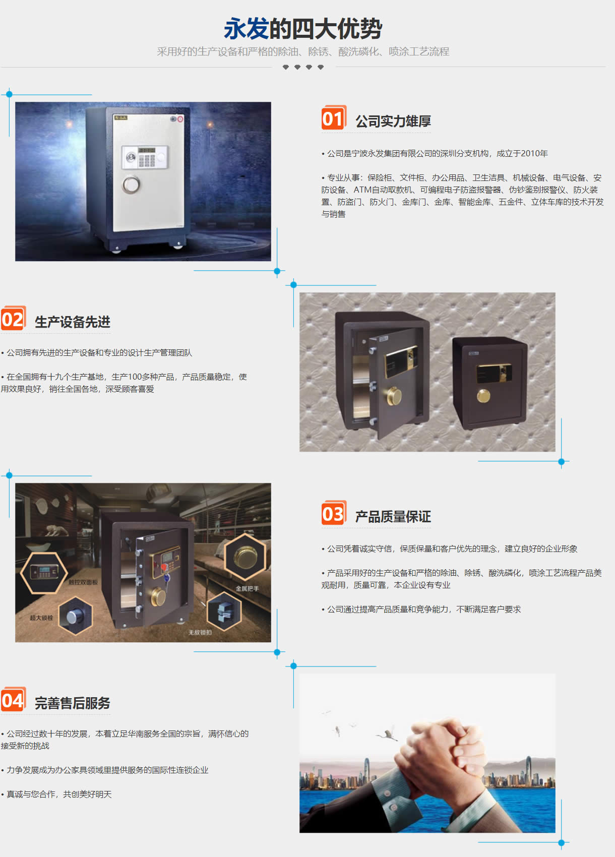 ? 專業(yè)從事:保險(xiǎn)柜、文件柜、辦公用品、衛(wèi)生潔具、機(jī)械設(shè)備、電氣設(shè)備、安防設(shè)備、ATM自動(dòng)取款機(jī)、可編程電子防盜報(bào)警器、偽鈔鑒別報(bào)警儀、防火裝置、防盜門、防火門、金庫門、金庫、智能金庫、五金件、立體車庫的技術(shù)開發(fā)與銷售
